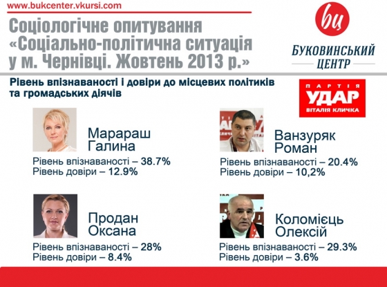 Який рівень довіри до губернатора-регіонала Михайла Папієва у Чернівцях? Чому у переліку політиків, які представляють ВО «Батьківщина» на Буковині, немає Івана Мунтяна - голови Чернівецької обласної організації цієї партії? Врешті, чому не оприлюднено рівень довіри до політичних партій, якщо такий визначався під час опитування? Це лише деякі запитання, які виникають одразу після ознайомлення з результатами соціологічного опитування, проведеного Громадською організацією «Буковинський центр» у м. Чернівці з 21 по 31 жовтня 2013 р.