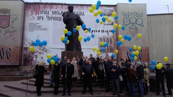 На Центральній площі Чернівців відзначають другу річницю Революції Гідності.
