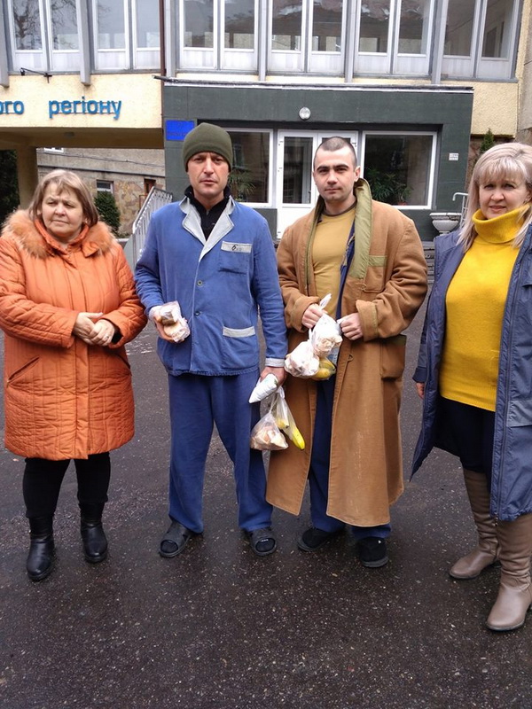 «Волонтери з села Шипинці напекли домашньої випічки, – каже Гання Юрбаш. – Підприємці Кіцманського ринку зібрали шкарпеток, шапок. Мешканка Кіцманя пані Оксана, яка зараз працює за кордоном, передала медичної техніки – ми відвезли до Львова 8 пар милиць, двоє ходунків. Доброчинці району зібрали сала, смальцю, фруктів, теплих светрів і штанів – адже хлопці, які виписуються, іноді не мають в чому вийти з лікарні…»