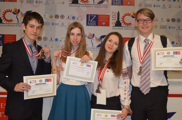 Золоту медаль з математики, срібну медаль з інформатики, дві бронзові медалі з фізики та екології, а також відзнаку за перемогу в історично-науковому квесті привезла українська команда (5 юних науковців – членів Малої академії наук України) з ХХІІ Міжнародної конференції молодих учених ICYS, що проходила з 19 по 25 квітня в м. Ізмірі (Турецька Республіка).