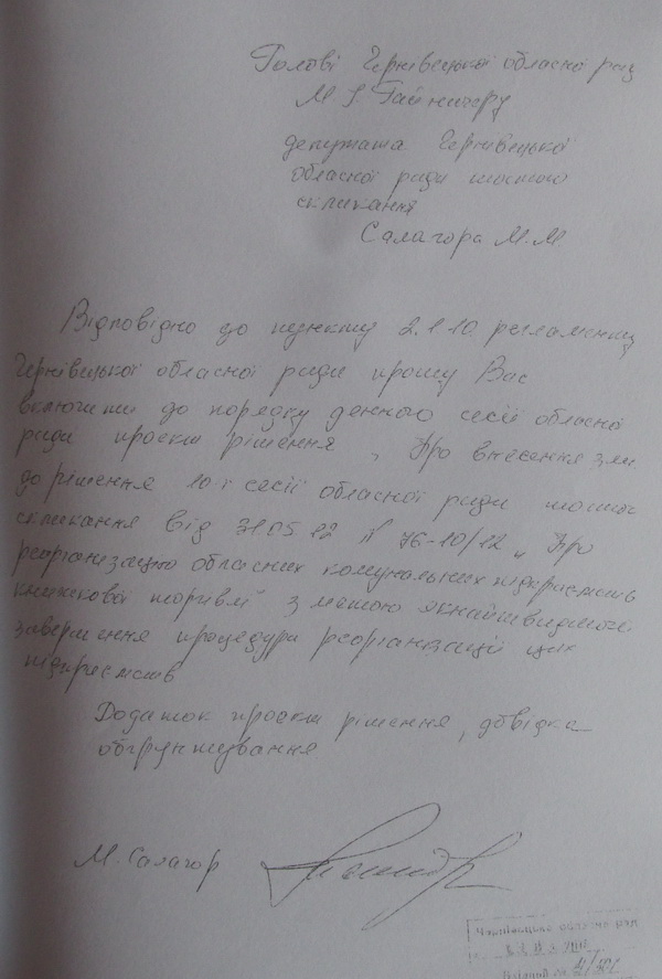 Йдеться про заходи з порятунку мертвонародженого проекту попередньої влади під кодовою назвою "Буковинська книга". До слова, запропонований депутатам проект рішення з цього питання цілком можна порівняти з реанімаційними заходами, які лікарі вживають до пацієнта, що перебуває в комі. Головне, щоб це не був саме той випадок, про який в народі кажуть: допоможе, як – відомо кому - припарка.