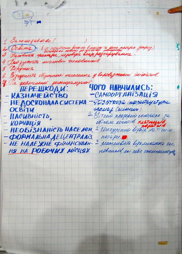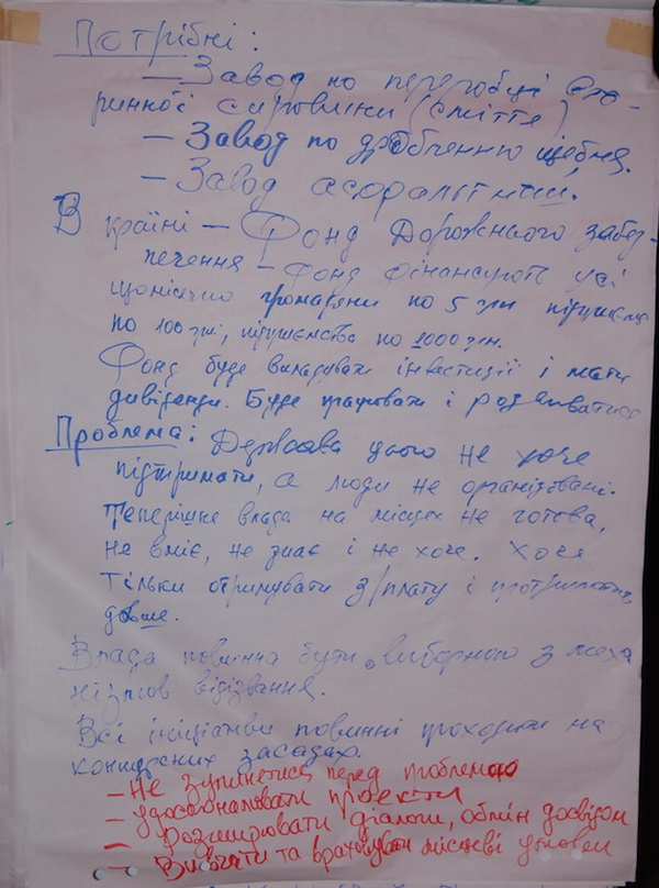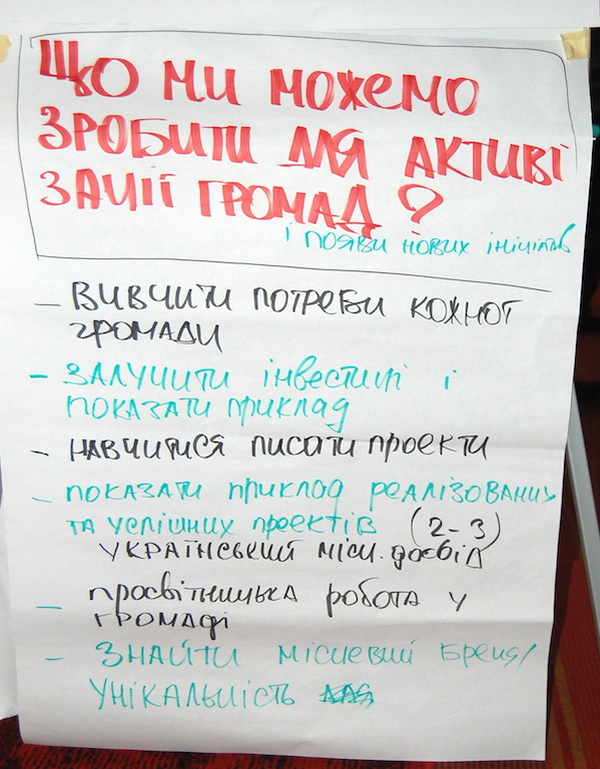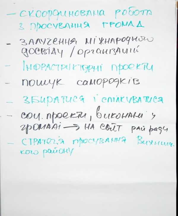 Впродовж дня учасники заходу шукали оптимальні шляхи впровадження громадських ініціатив місцевими ресурсами без підтримки з боку сільських та селищних рад.