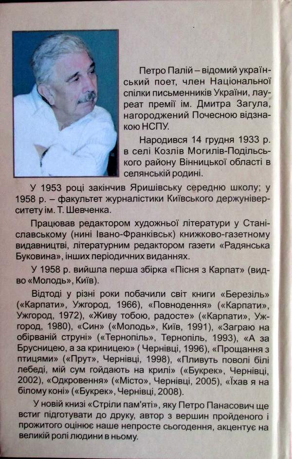 17 грудня, о 14.30, в Українському народному домі - світлиця "Просвіти" - відбудеться творчий вечір з нагоди 80-річчя від дня народження буковинського письменника Петра Палія та презентація його поетичної книги "Стріли пам"яті", що вийшла посмертно.