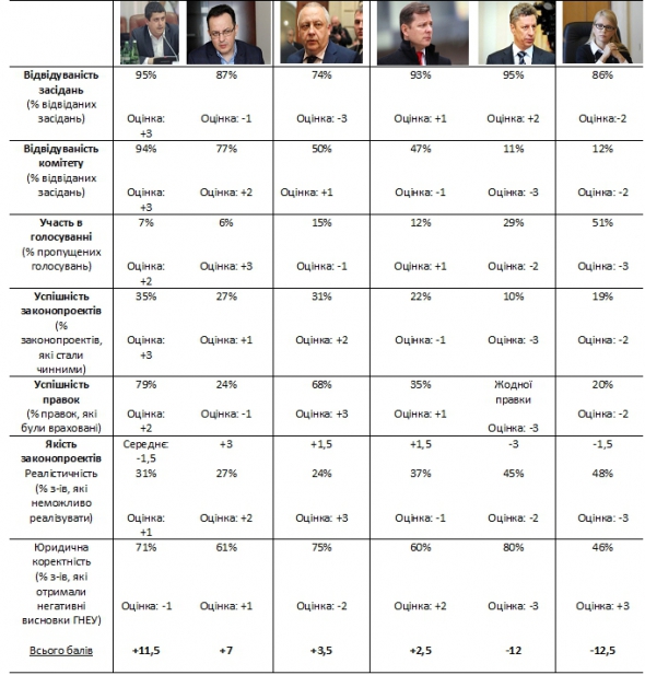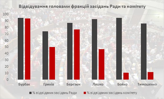 Худшие показатели посещаемости комитетов у Тимошенко и Бойко: 12% и 11% соответственно.
