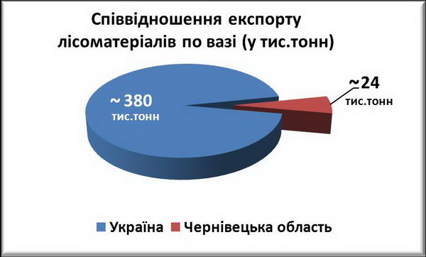 Так, упродовж I кварталу 2015 року митницею здійснено митне оформлення лісопродукції близько 380 тис. тонн. загальною вартістю майже 480 млн. грн., у т.ч. оформлено експорту лісу походженням з Чернівецької області понад 24 тис. тонн. на суму понад 28 млн. грн., що становить 6% від загальної кількості експортованих лісоматеріалів.