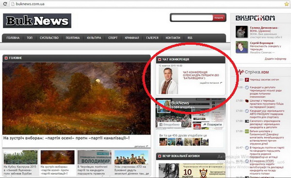 У понеділок, 12 жовтня, з 16.00 до 17.00 на інформаційному сайті "BukNews: Всі новини Буковини" відбудеться чат-конференція кандидата на посаду Чернівецького міського голови від партії ВО "Батьківщина" Олександра Пуршаги.
