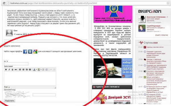 ІV. Після цього відкриється нове вікно і ви зможете поставити своє питання чи залишити коментар так, як описано в ситуації ІІ. Вказувати ім'я у віконечку "Ім'я" не обов'язково. Питання чи коментар все одно потраплять на сайт. Вказати потрібно лише захисний код.