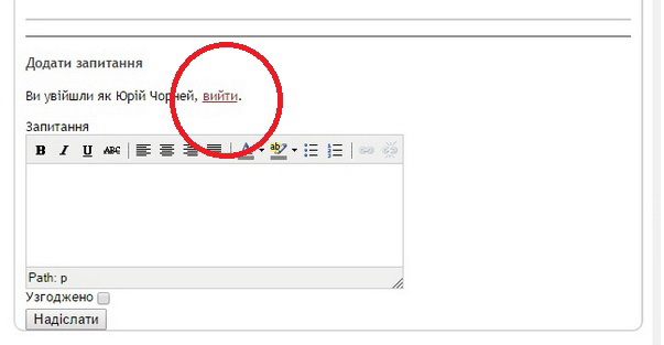 ІІІ. Якщо ви потрапили на сайт через Фейсбук, на що вказує напис "Ви увійшли як (ІМ'Я ПРІЗВИЩЕ)", але бажаєте залишити свій коментар або поставити питання АНОНІМНО, натисніть напис "ВИЙТИ" поруч із вашим ІМ'ЯМ і ПРІЗВИЩЕМ. Так, як це показано на малюнку.