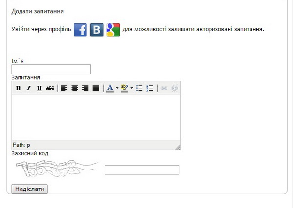 ІІ. Наступні кроки: 1) внизу сторінки напишіть у вікні своє запитання, 2) введіть захисний код, який підтверджує, що запитує людина і 3) натисніть "надіслати".