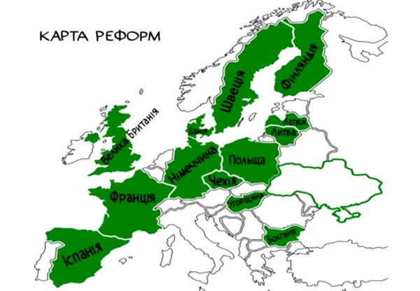 Приклади впровадження реформи на суспільно-важливих сферах життя українців: