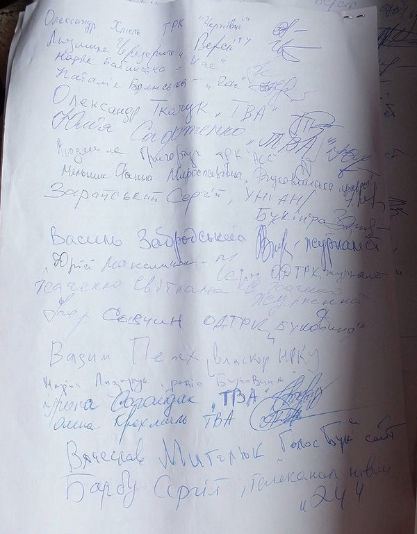 Чернівецькі журналісти на спинах одне одного писали листи Пшонці й Захарченку