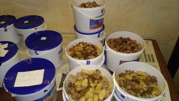 Для приготування страв для бійців волонтери закупили 70 кг м’яса. Приміщення для приготування, а також фінансову допомогу надало кафе «Панацея».