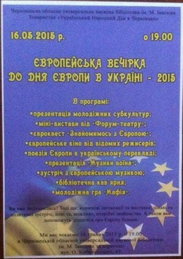 Оргкомітет свята закликає чернівчан відзначити День Європи та долучитися до свята вуличної музики. Відкрий для себе музику рідного міста !