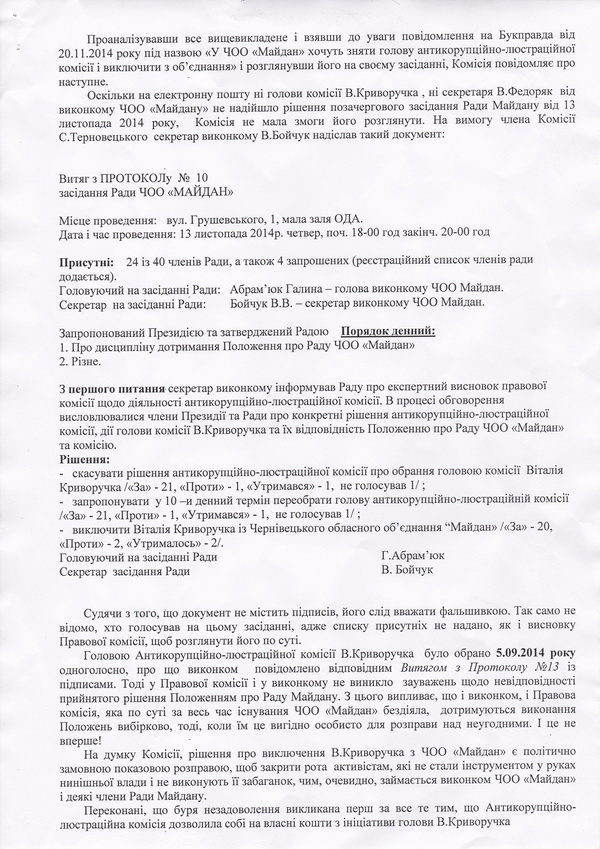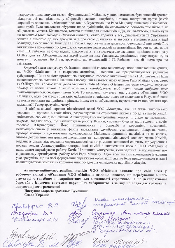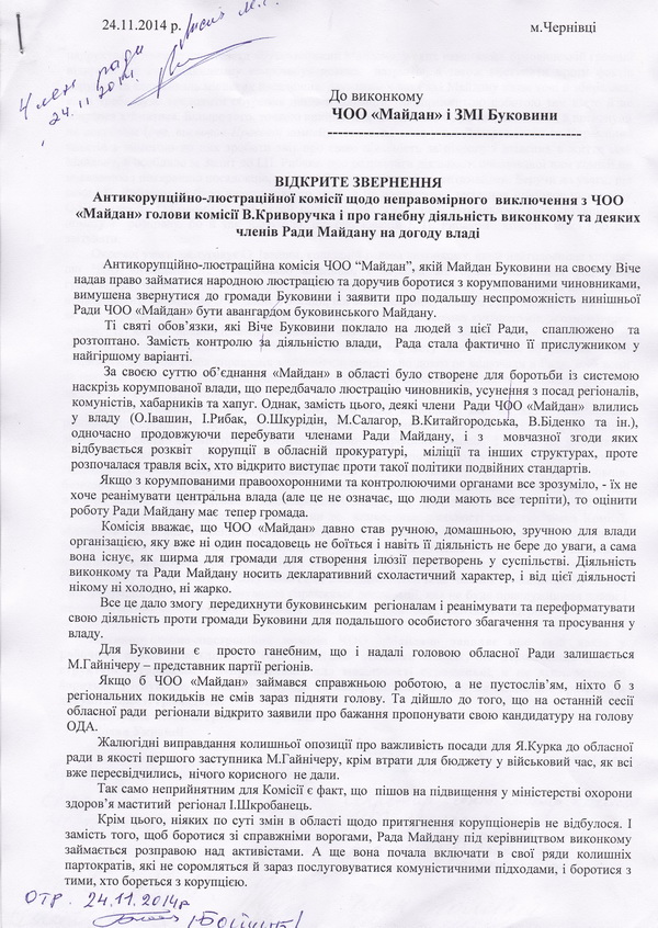 Деяких членів чернівецької Ради Майдану звинувачують у ганебній діяльності на догоду владі