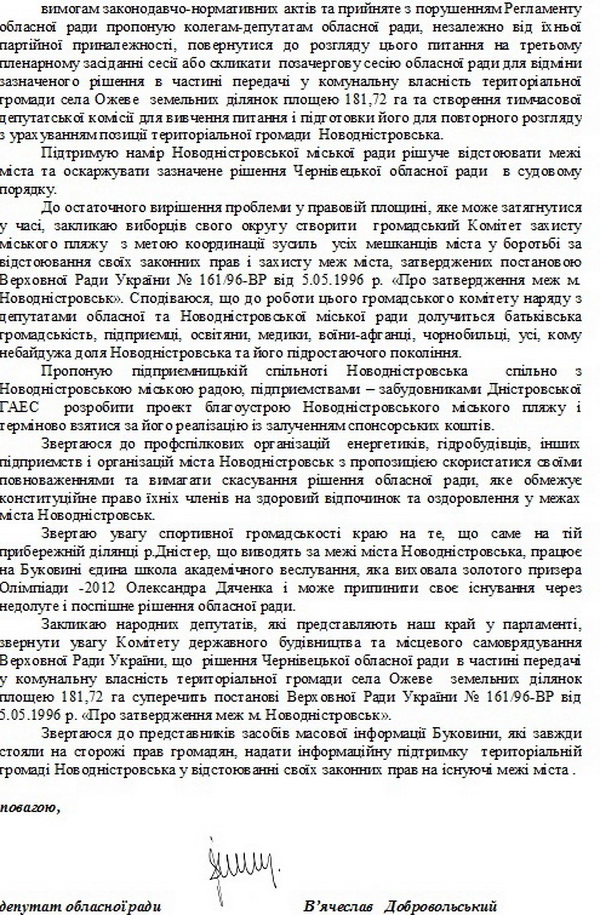Депутат облради обіцяє захищати Новодністровськ усіма можливими засобами
