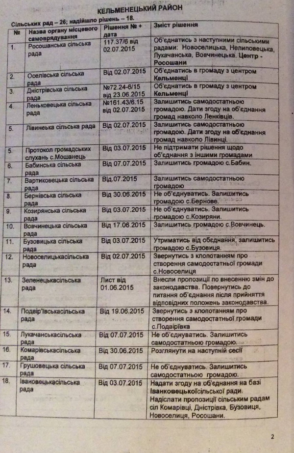 Такими є результати розгляду сільськими, селищними, міськими радами питання про децентралізацію.