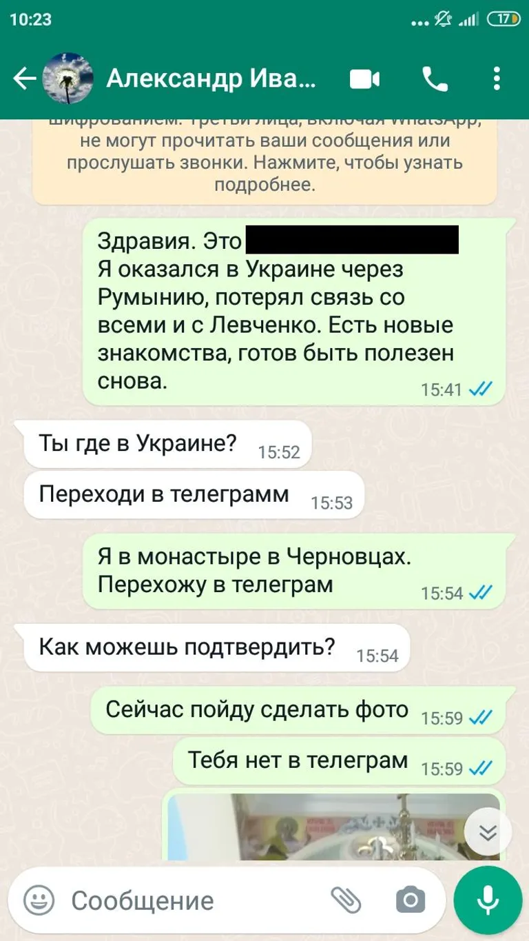 За даними слідства, вже після початку великої війни киянин виїхав у Чернівці, де оселився в одному з монастирів УПЦ МП. Зрозуміло, що служителі церкви прихистили адепта "русского мира" без жодних зайвих питань, про що і свідчить його листування з куратором.