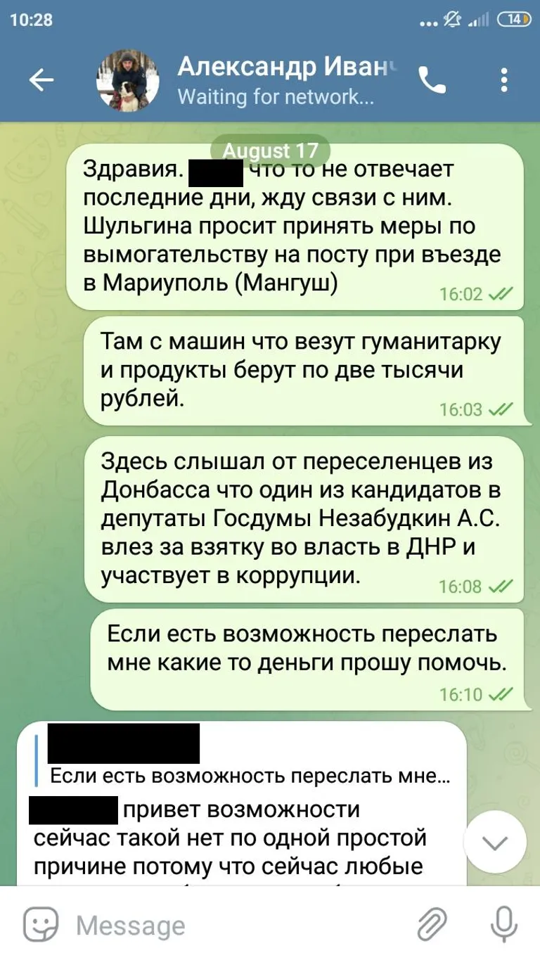 Його просили вжити заходів щодо вимагань на блокпосту на в'їзді до Маріуполя, бо окупанти у буквальному сенсі не давали там спокою ані місцевим мешканцям, ані "волонтерам" із Росії.