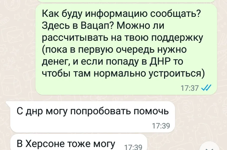 Оскільки ж зрадник вкрай боявся отримати повістку та потрапити до лав ЗСУ, а ніякої допомоги щодо ухиляння від мобілізації куратори не надавали, він навіть захотів стати псевдоволонтером. Ідея куратору сподобалася, однак реалізувати її, звісно, не вдалося.