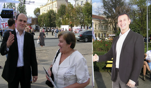 Святкування Дня міста Чернівці цього року на щастя, чи ні, співпало з активною фазою передвиборчої кампанії. Не скористатится такою нагодою, щоб не поспілкуватися зі своїми потенційними виборцями деякі кандидати у народні депутати, звісно, не могли. Проте як встигнути потрапити одразу на всі площі й вулиці міста? Тож фішкою цих днів стали картонні муляжі кандидатів у повний зріст, на які можна було натрапити в більшості людних місць. Лідером за кількістю картонної реклами, поза сумнівом, є секретар Чернівецької міської ради Віталій Михайлішин. На площі Філармонії, Театральній, Соборній тощо одночасно було розміщено по кілька його відфотошоплених муляжів. Тож складалося враження, шо він встигає усюди.