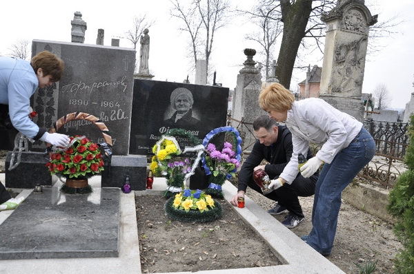Галиць садив ялинки і ставав до фотографії з лопатою, а Михайлішин носив мішки і оглядав могилу письменниці Ольги Кобилянської