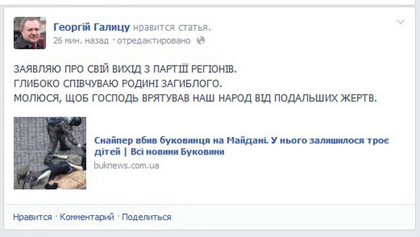 Галиць вийшов з Партії регіонів