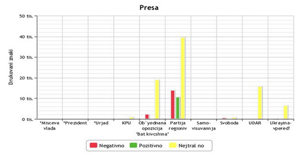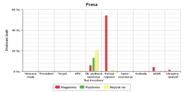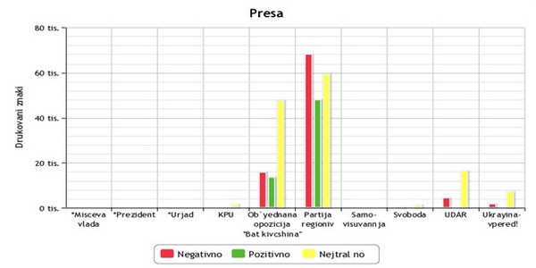 В нейтральній тональності найбільше матеріалів було про діяльність Партії Регіонів (діяльність міської та обласної влади), найменше – про КПУ та ВО «Свобода». В позитиві згадана тільки Партія Регіонів.