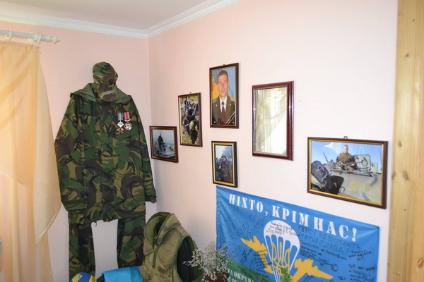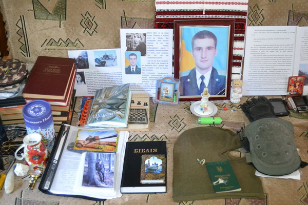 - Був вражений щирістю та добротою пані Марії, яка навіть незважаючи на те, що віддала державі найдорожче, зуміла знайти в собі сили жити далі у мирі зі світом та людьми, - поділився враженнями від спілкування з мамою героя Іван Мунтян. - Оглянувши кімнату Юрка, у якій пані Марія зібрала усі речі, що нагадують їй про сина-Героя, я ніби познайомився з ним особисто. Тут його форма, бойовий прапор, який передали побратими, Святе Письмо, його щоденник, журнали й газети, у яких про нього писали, військовий квиток, прошитий осколком «граду», який обірвав життя справжнього патріота України.