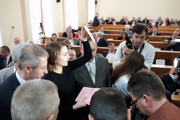 Так, Олександр Фищук, який також брав участь у виборах голови облради, але програв, у своєму зверненні з трибуни заявив: