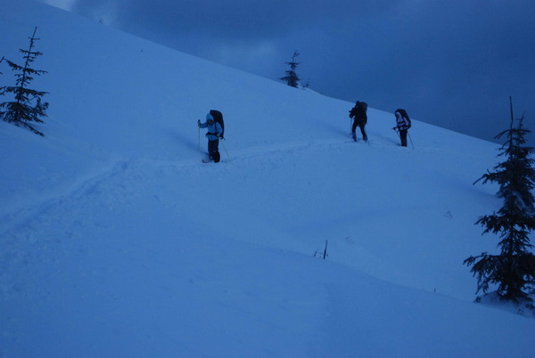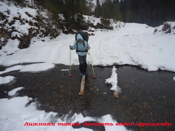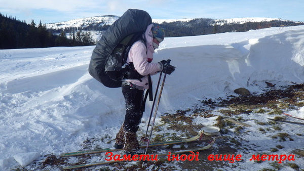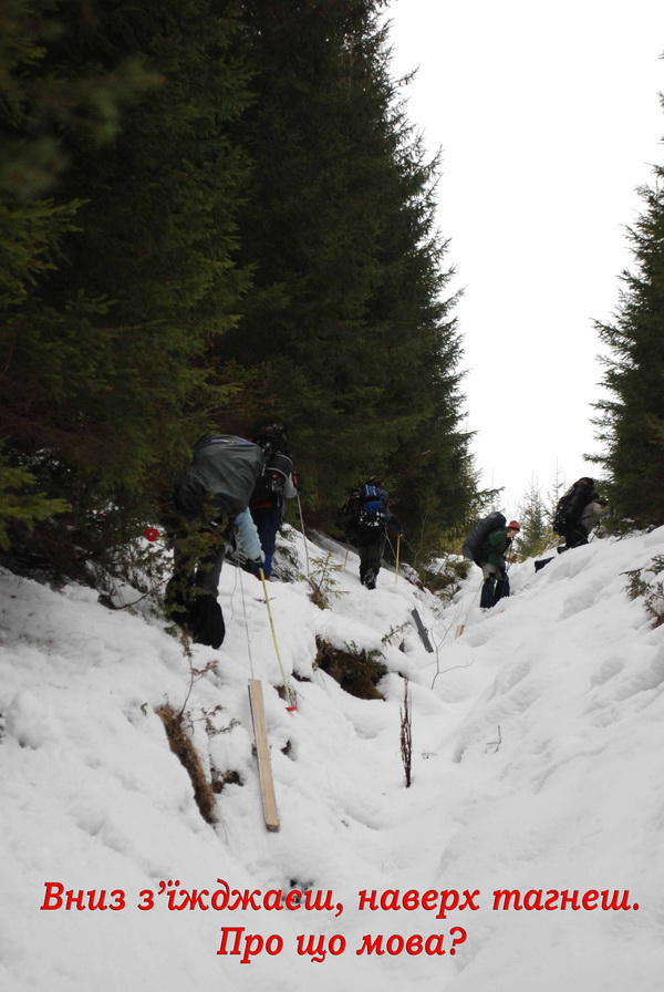 Нитка маршруту поєднала населені пункти Шибене Верховинського району Івано-Франківської області та Путилу – районний центр Чернівецької області. Всього за шість днів ми подолали близько 80 км. І хоча в перший день подорожі рух на лижах ускладнювався «підлипом» через плюсову температуру, всі наступні дні морозна погода тільки сприяла проходженню маршруту. Мінімальна температура сягала -16°С. Іноді глибина снігу була близько 1 метра.
