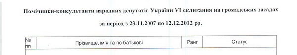 Повний перелік помічників народних депутатів 2007-2012 років, що тривалий час ретельно приховувався від громадськості, відтепер відкритий для всіх.