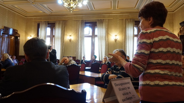 Засідання медичної комісії в соціальних мережах та Інтернеті завжди анонсуються, як відкриті та прозорі, тому ми вирішили зібратись колективом та прийти на засідання – розповідає лаборант відділення загальної патології № 2 Тімофті Віолета Євгенівна – але прозорості роботи комісії ми не побачили, більше того побачили зверхнє відношення деяких депутатів, що особисто мене неприємно вразило. Набагато більше часу, ніж нам, було приділено промові представника ГО «Ніхто крім нас» Юрія Ковальця, який намагався нам, членам комісії та представника Департаменту охорони здоров’я розказати про наші проблеми та нав’язати нам своє бачення нашого майбутнього. Так, у нас не найкращі умови роботи, але на якості роботи та хворих це ніколи не відображалось. То чому якийсь активіст, якого ми не запршували, повинен нав’язуватись нам та втручатись у нашу роботу. Апелював він до нас тільки тим, що «Ніхто крім нас» - це загальноукраїнська громадська організація. Нажаль, ми так і не змогли добитись від нього відповіді, чому він втручається в життя нашого колективу та яку мету переслідує, але чітко зрозуміли, що лобіює він інтереси Жукова Л.Ф. та загадуємось чому.