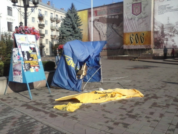 - Це вчинили люди, які дуже погано ставляться до політичної агітації. Не будемо звинувачувати конкурентів. Не виключаю їх, але й не виключаю людей у стані алкогольного сп’яніння, які хотіли познущатися з усіх політичних сил. Міліція б мала слідкувати, але не вберегла. Будемо відновлювати намет та продовжувати агітаційну роботу. Сьогодні на засіданні виборчого штабу будемо розглядати рішення щодо звернення до правоохоронних органів.