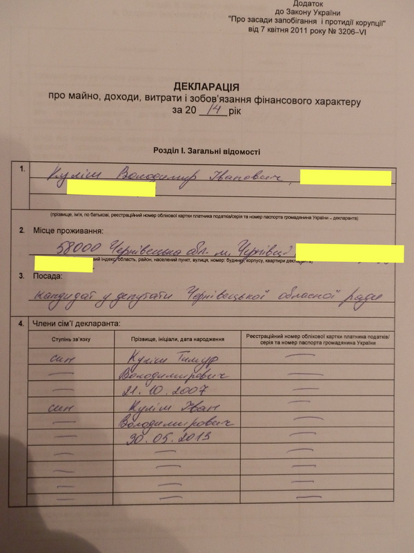 Декларація першого заступника голови Чернівецької ОДА Володимира Куліша, депутата Чернівецької обласної ради.