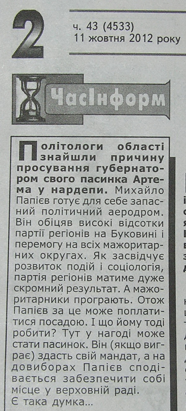 Принаймні саме таке припущення виловила в останньому числі газета "ЧАС".