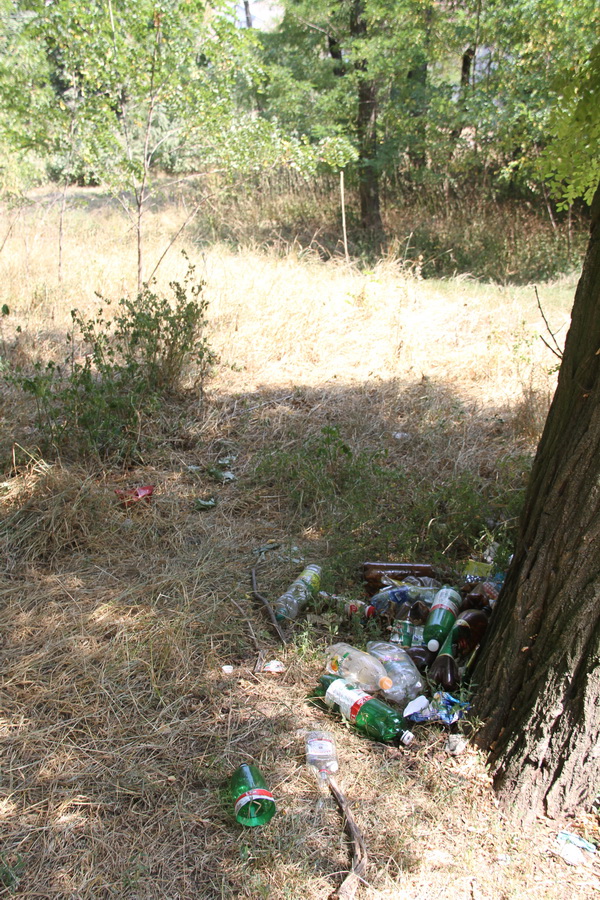 Парком розкидані гори сміття – етикетки, целофанові мішки, пластикові та розбиті скляні пляшки, десь під кущем навіть побачив розтрощений телевізор. На кінці парку – ціла вантажівка побутових відходів. Побачивши такий безлад, люди перетворили це місце у стихійне сміттєзвалище – матрац, мішки і ще багато всього.
