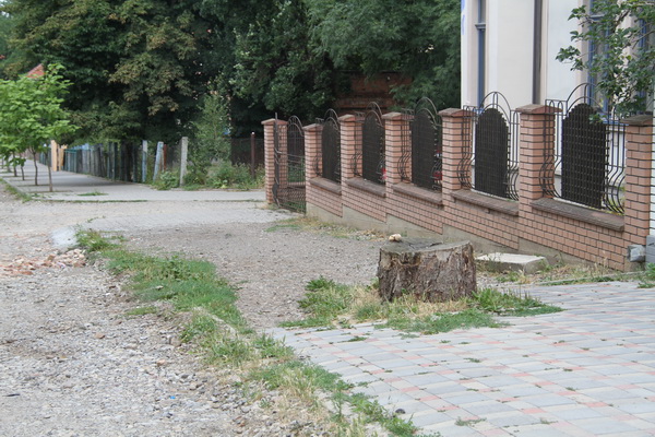 Вулицею у центральній частині Чернівців легковим авто не проїхати – вибоїни, ями, і навіть рови такі, що пошкодять дно машини навіть найспритніші водії. По середині вулиці – відкритий люк, «позначений» сухим гіллям, а ще купою сміття. Пеньки посеред тротуару заввишки в півметра створюють не лише перешкоду, але й небезпеку у темну пору доби. А напроти будинку 2Б ями чи не найглибші – аж 40 см. На початку вулиці прокладений тротуар протяжністю близько 150 метрів. А далі прогулятися пішоходам вдасться хіба там, де хороші господарі самостійно впорядкували територію.