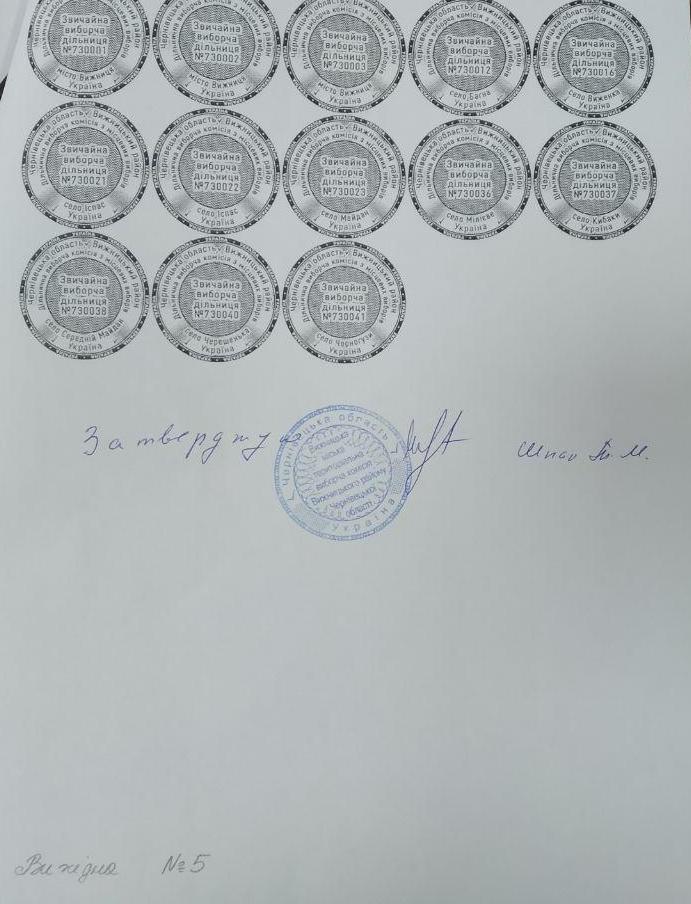 Вашківецька та Вижницька міські ТВК не отримали печатки для роботи ДВК через те, що за словами керівництва цих комісій, виконавець робіт фізична особа-підприємець, після отримання попередньої оплати за свої послуги не виходив на зв’язок.