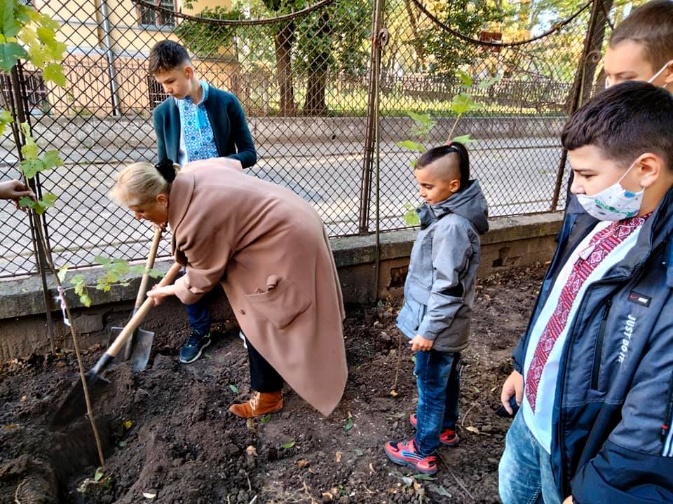 А біля місцевої школи №16 калинові кущі висаджували в знак пам’яті про військових, які загинули на Сході, школярі разом із двома запрошеними ветеранами АТО. Долучилися до акції озеленення й батьки учнів. За словами директора школи Сергія Білоуса, у школі навчається понад 20 дітей, батьки яких є ветеранами АТО та ООС. Частина з них і зараз перебуває на Сході. Отож, школа долучилась до міської акції з вшанування пам’яті загиблих військових.