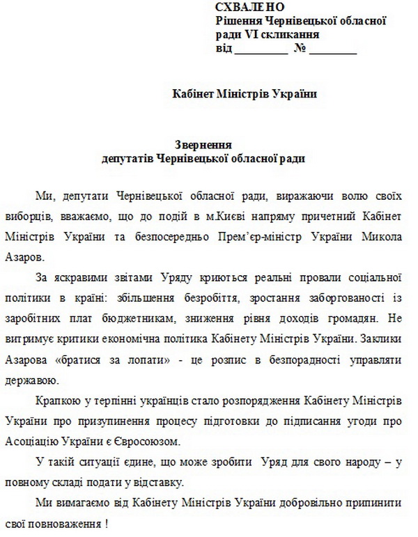 Станом на 16.12 (02.12.2013) на сайті Чернівецької облради не було жодного проекту рішення з питань, які виносяться на позачергову сесію облради.
