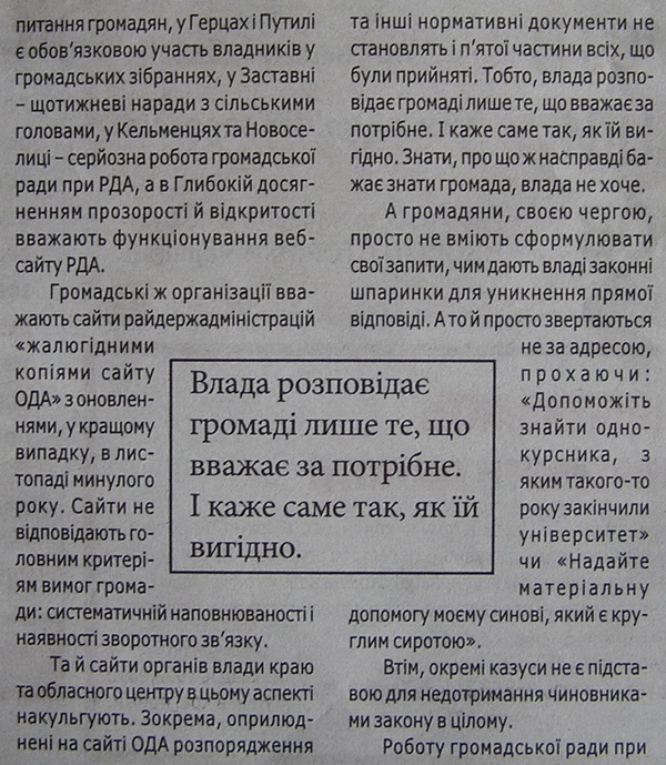 На Буковині влада розповідає громаді тільки те, що вважає за потрібне й те, що їй вигідно
