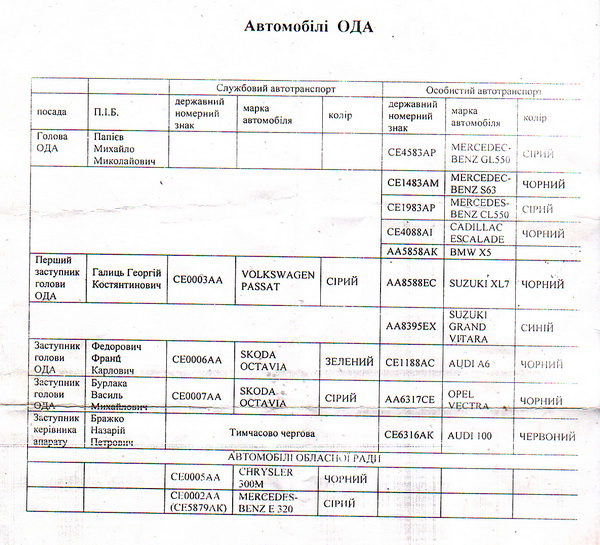 Згідно офіційному документу, який додається, Михайло Миколайович зайняв одне з перших місць серед всіх губернаторів України за кількістю одиниць транспорту та ціною машин, якими він користувався. Ці дані вже надано службам СБУ, ДАІ, міліції Чернівецької області.