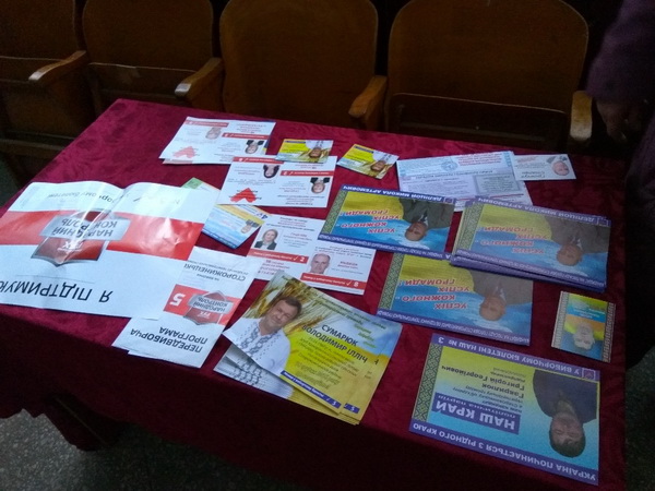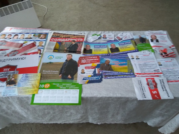 Черговий член комісії стверджував, що дані агітаційні газети та листівки залишили представники партій, щоб виборці мали можливість ознайомитись з їх кандидатами у депутати.