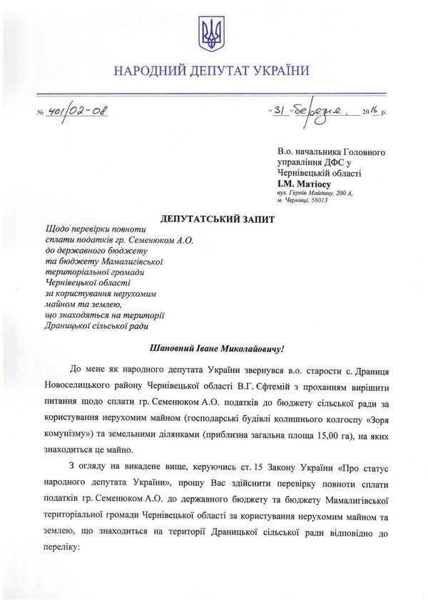 Про це повідомив народний депутат України Григорій Тіміш. Відповідне звернення він направив на ім'я в.о начальника ДФС області пана Матіоса.