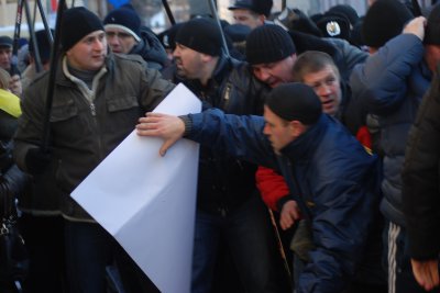 На протестувальників у Чернівцях кинули "Беркут", щоби ті не зіпсували настрій Лаврову