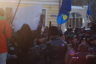 Зовсім бидляча поведінка міліції,яка не лише мирну ходу "Свободи" перепинила брутально,а й перешкоджала разом із якимись невідомого походження блазнями у цивільному професійній діяльнсти журналістів, Такого навіть у Донецьку в 2003 - 2004 роках не було.