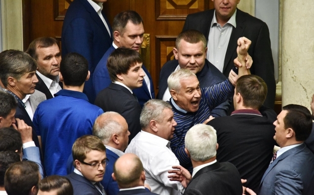 Сьогодні у Верховній Раді сталася штовханина між народним депутатом Володимиром Парасюком та нардепами, які захищали Романа Насірова.