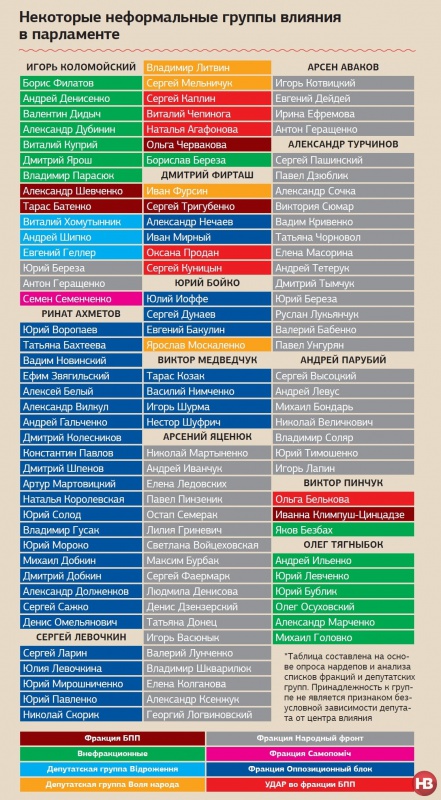 Столичне видання "Новое время" провело детальний аналіз груп впливу у Верховній Раді.