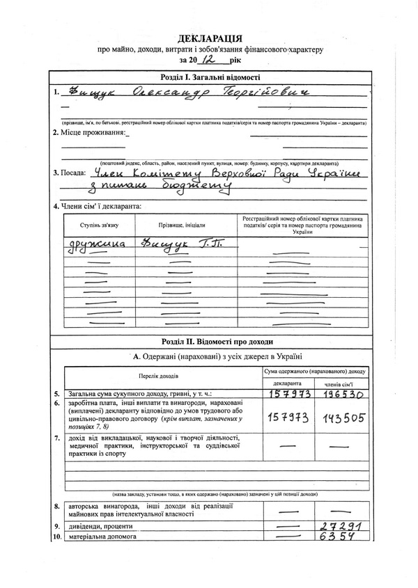 Народний депутат України Олександр Фищук оприлюднив свої доходи