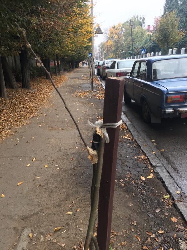 - Редко делаю публикации в ФБ, но сегодня не удержался. Возмущение и негодование переполняло, можно сказать крик души (фото прилагаю ниже)... Это у нас в городе на улице Леси Украинки. Цензурные слова подобрать тяжело, чтобы объяснить действия неких существ... мне непонятно какие мысли должны быть в голове у этих существ и как вообще можно додуматься, чтобы специально сломать все молодые, посаженные совсем недавно деревца (((- обурився депутат Сєхов.